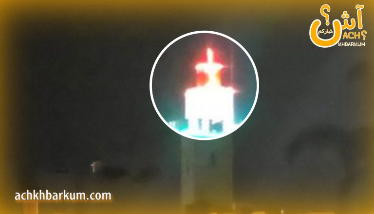 صفحة محلية نشرت الصور على “فيسبوك”، مرفقة بنداء للسلطات المعنية وجماعة الهرهورة والمندوبية الإقليمية للشؤون الإسلامية بمدينة تمارة، طالبت فيه بالتحقق من الأمر وتصحيحه إذا ثبت وجود خطأ تقني أو غير مقصود في إنارة المئذنة.