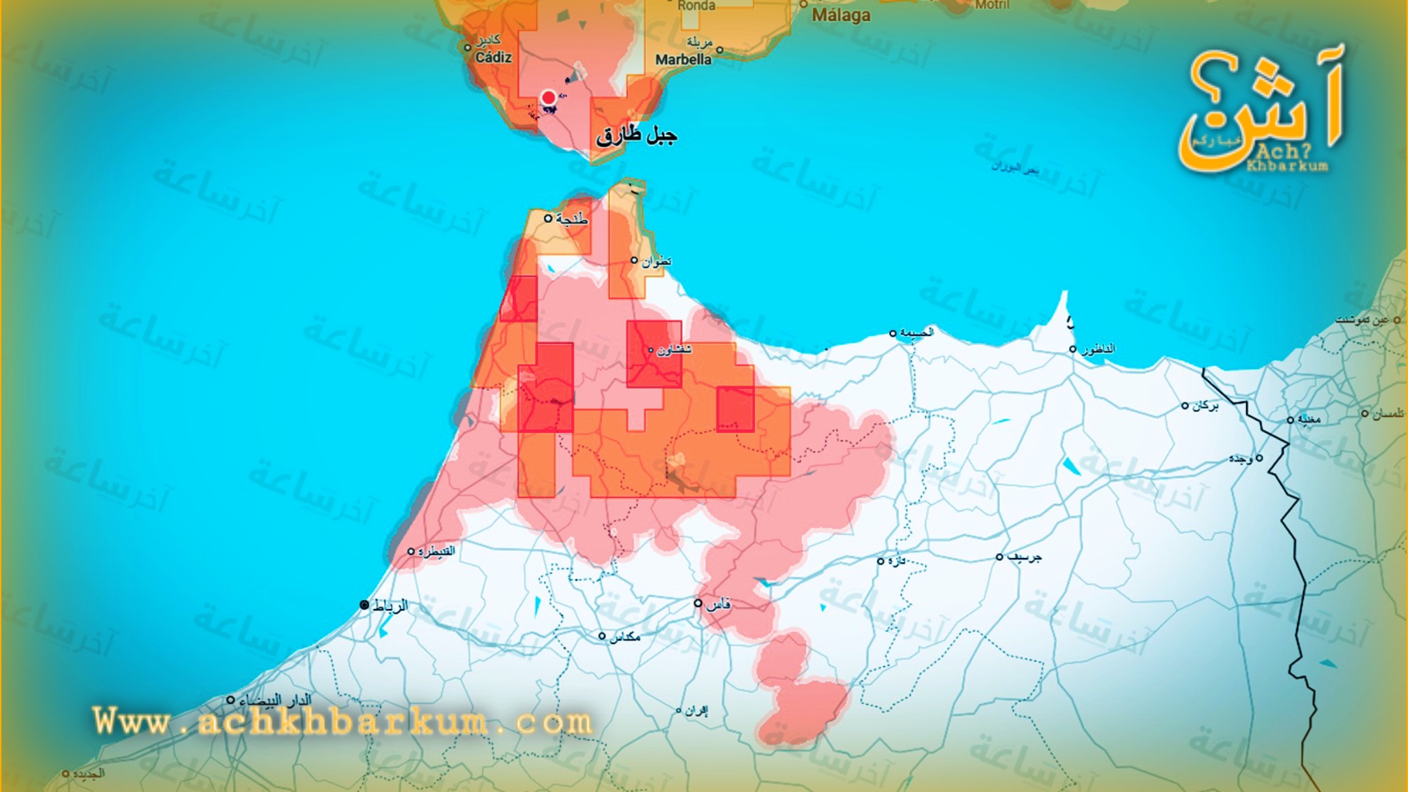 ووفق الخريطة التفاعلية للمنصة، فقد تم تصنيف مساحات واسعة ضمن درجات إنذار متوسطة إلى مرتفعة، ظهرت باللونين البرتقالي والأحمر، خاصة في مناطق الشمال الغربي. وتشمل الأقاليم الأكثر عرضة لهذه المخاطر مدينتي طنجة وتطوان ومحيطهما الريفي، إضافة إلى العرائش والقصر الكبير المصنفتين ضمن نطاق الخطر المرتفع.